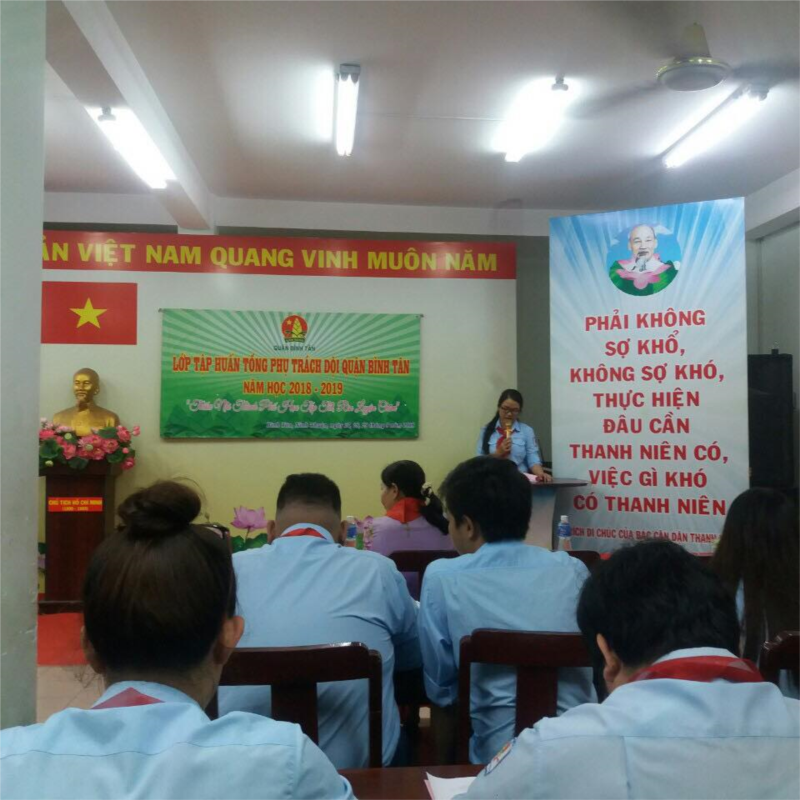 Tối ngày 27/9/2018, Hội đồng Đội quận Bình Tân tổ chức lớp tập huấn Phụ trách Đội quận Bình Tân năm học 2018 - 2019 cho 35 đồng chí là Tổng phụ trách, Phó Tổng phụ trách, Bí thư Chi đoàn trường, đại diện Khoa phương pháp Đội Nhà thiếu nhi quận từ ngày 27/9/2018 đến ngày 29/9/2018 tại Bình Tân - Ninh Thuận, với các chuyên đề: