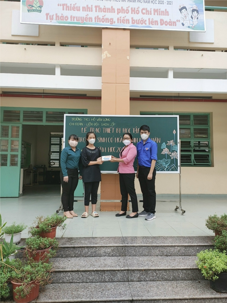 Nhà trường đã trao tặng 6 chiếc điện thoại Redmi 9A cho các em học sinh mồ côi, học khá, giỏi và có hoàn cảnh gia đình khó khăn, phải vừa đi học, vừa mưu sinh; … để các em có đủ điều kiện tham gia học tập trực tuyến. Song, đó cũng là dịp tôn vinh những tấm gương vượt khó, học tập tốt góp phần ươm mầm tài năng trẻ.