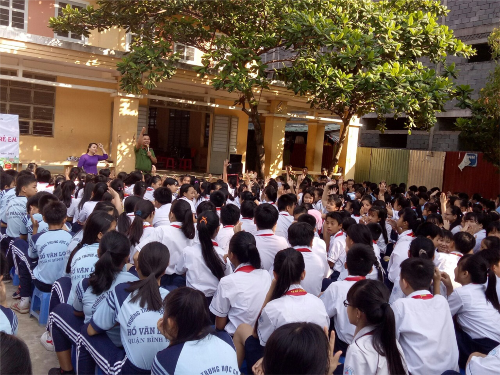 Sau chương trình khui heo đất các em học sinh được nghe các chú công an của quận Bình Tân phổ biến, giáo dục pháp luật về phòng chống xâm hại trẻ em và tác động của của mạng xã hội trong trường học. Các em học sinh trong nhà trường đã tham gia rất tích cực, thông qua buổi phổ biến này các em cũng có được rất nhiều kiến thức kỹ năng để tự bảo vệ mình trước những hành vi xâm hại và tác động không tốt của mạng xã hội.