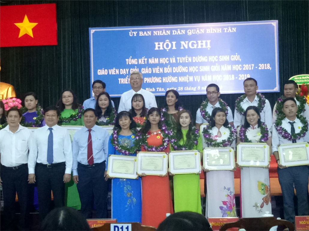 Sáng ngày 28/8/2018, UBND Quận Bình Tân đã tổ chức Hội nghị “Tổng kết năm học và tuyên dương học sinh giỏi, giáo viên dạy giỏi, giáo viên bồi dưỡng học sinh giỏi nămhọc 2017 - 2018, triển khai phương hướng, nhiệm vụ năm học 2018 - 2019”. Đến dự có đồng chí Lê Văn Thinh, Phó bí thư Quận ủy, Chủ tịch UBND quận; đồng chí Đỗ Đình Thiện, Phó Chủ tịch UBND Quận cùng Hiệu trưởng các trường Mầm non, Tiểu học, THCS trên địa bàn quận.