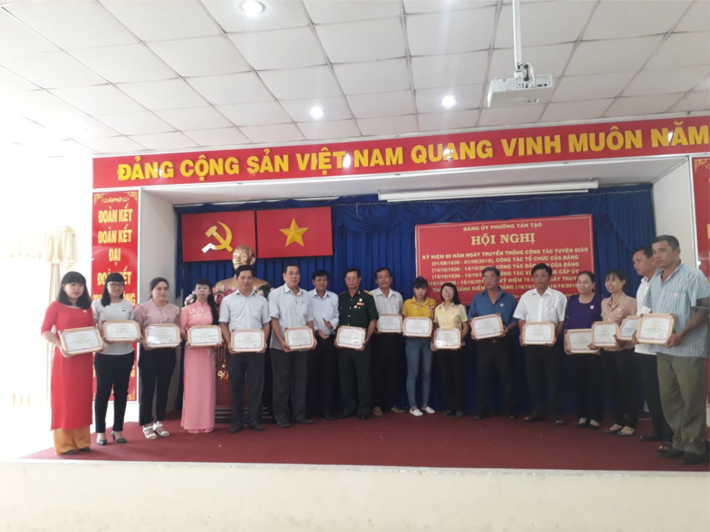 Sáng ngày 16 tháng 11 năm 2018, tại Hội trường UBND phường Tân Tạo, HĐND- Đảng ủy - UBND phường Tân Tạo long trọng tổ chức Hội nghị kỷ niệm 88 năm Ngày truyền thống công tác Tổ chức của Đảng (14/10/1930 – 14/10/2018), công tác dân vận của Đảng (15/10/1930 – 15/10/2018), công tác Văn phòng cấp ủy (18/10/1930 – 18/10/2018) và kỷ niệm 70 năm ngày truyền thống ngành Kiểm tra Đảng (16/10/1948 – 16/10/2018) nhằm ôn lại 70 năm ngày truyền thống ngành Kiểm tra Đảng, đồng thời đánh giá kết quả thi đua thực hiện Công trình “ Dân vận khéo” năm 2018.